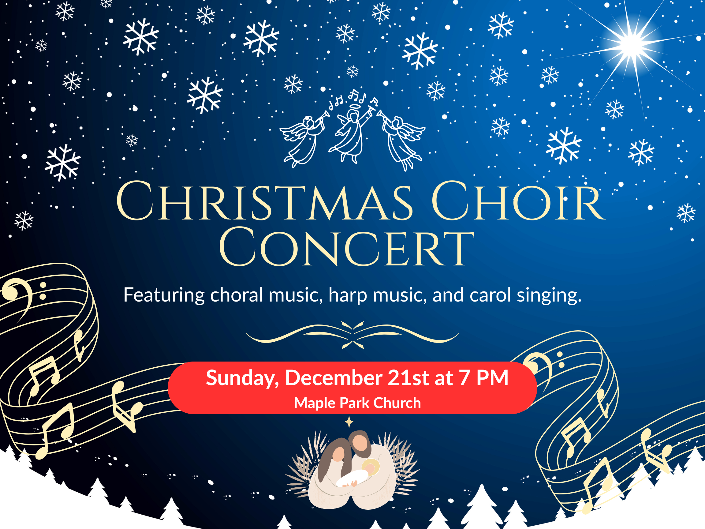 You’re warmly invited to a joyful evening of music and worship at our Christmas Choir Concert on Sunday, December 21 at 7:00 p.m. Come and experience the beauty of the season through inspiring choral selections, special instrumental pieces, Scripture readings, and the singing of beloved Christmas carols that remind us of the Savior’s birth.